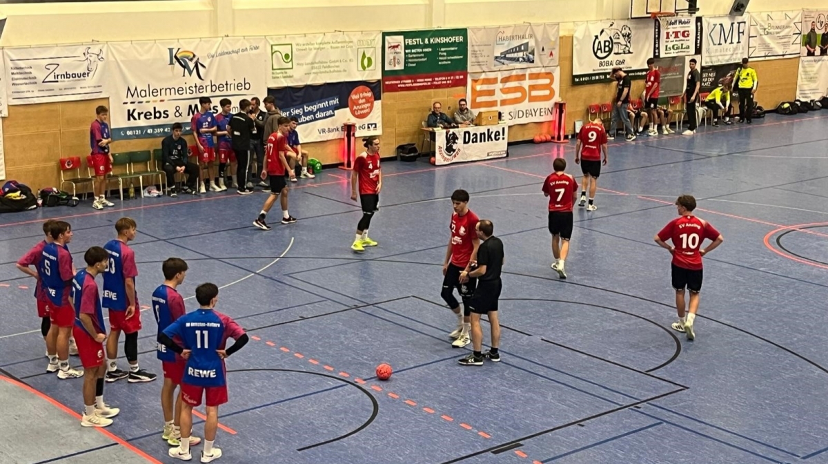 Am vergangenen Sonntag um 17 Uhr starteten unsere Junglöwen mit dem klaren Ziel gegen Kempten die ersten Punkte der Saison einzufahren. Leider musste die mA hierbei wieder auf einige wichtige Spieler verzichten. Bis zum Zwischenstand von 7:7 in der 16. Minute konnte sich keine Mannschaft entscheidend absetzen, anschließend zog Kempten Tor um Tor davon. Während unsere Junglöwen ihre angesagten Spielzüge nicht einem Torerfolg abschließen konnten, war bei Kempten in dieser Phase jeder Wurf ein Treffer. Mit einem 11:16 Rückstand ging es in die Kabine. Nach der Halbzeitpause und den richtigen Worten in der Kabine ein komplett anderes Bild. Starker Start der mA und schon in Minute 36. die zweite Auszeit des Kemptener Trainers. Nichtsdestotrotz konnten die Junglöwen Tor um Tor verkürzen bis zum Ausgleich von 22:22 in Minute 50. 7 Tore aufgeholt in nur 18 Minuten! Leider konnten die Junglöwen nach dem Ausgleich mehrere Chancen zur Führung nicht nutzen. Allein 3 Lattentreffer nach tollen Kombinationen in den letzten Minuten des Spiels mit der Konsequenz, dass sich Kempten nochmals zum Endstand von 23:26 absetzen konnte. Die insgesamt starke Leistung der zweiten Halbzeit soll jetzt in das nächste Spiel mitgenommen werden, außerdem können wir die spielfreien Wochen zum Auskurieren der Verletzungen genutzt werden. Spielfilm: 2:2, 3:6, 7:7, 8:13, 11:16, 17:19, 22:22, 23:26 Spieler: Moritz Hierner und Tobias Patzer (Tor), Julian Adam (3), Jonas Lepple, Leopold Seifert (7), Simon Dirnberger (8), Max Gruber, Johannes Mayer, Kilian Oellerer (1), Daniel Seyfried (1), Jeremy Beuthan (3) Trainer: Florim Hoxha